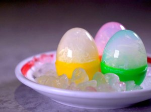 Por Por‘s specialty snack was agar agar jelly with egg drop that was made in the shape of an egg using plastic Easter egg molds. I don’t think you can find it in Hong Kong anymore, or anywhere else, for that matter. But it was a popular street food in the 1970’s. It cost close to nothing to make, and kids were happy to get a sweet treat for pennies.