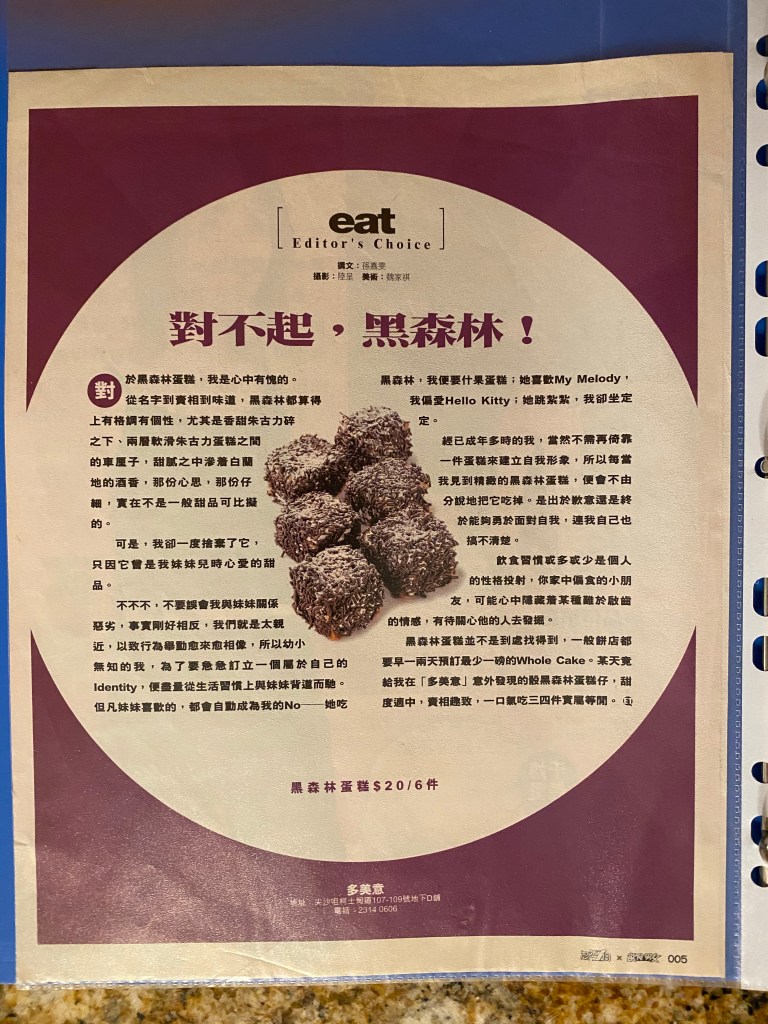 《飲食》給予我很大的創作空間。一年多下來,我有機會寫了幾篇旅遊飲食專題,香港老店介紹,以及中英對照的食譜,算是我對food writing的一點致敬。